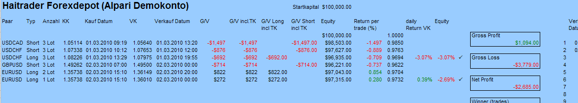 Haitrader, lass doch, und da es sich sowieso um eine Demokonto handelt, die Sache auf MyFXbook.com laufen. So haben Interessierte einen klareren Überblick des Track Records. Du scheinst ja selbst ein bisschen durcheinander zu kommen, denn um ca 20:00, zum Zeitpunkt deines Postings, war der Stand -$1000 tiefer als von dir angegeben. ;-)