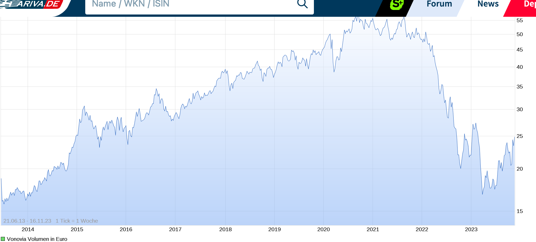 Bei Vonovia hatte ich meine ersten Aktien für knapp über 50 Euro gekauft und dann einmal nachgekauft.