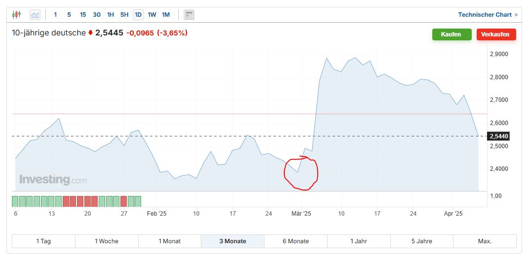 1) Die verhängten Zölle werden ersten Berechnungen von Ökonomen zufolge Global zu einem Sinken der Verbraucherpreise führen. Waren, die nun nicht mehr in den USA verkauft werden können, werden in die übrige Welt umgeleitet. Allen voran dorthin, wo die Volkswirtschaften offen sind. Für Deutschland geht man ersten Berechnungen zufolge von einem Sinken der Verbraucherpreise von 1,42 Prozent aus (also -1,42 Inflation = Deflation).