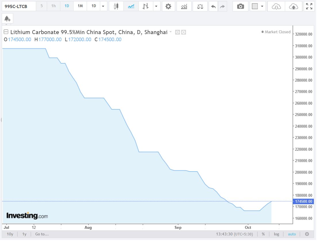 Electric vehicle sales have been strong and the supply of lithium to the battery manufacturers has struggled to keep pace.