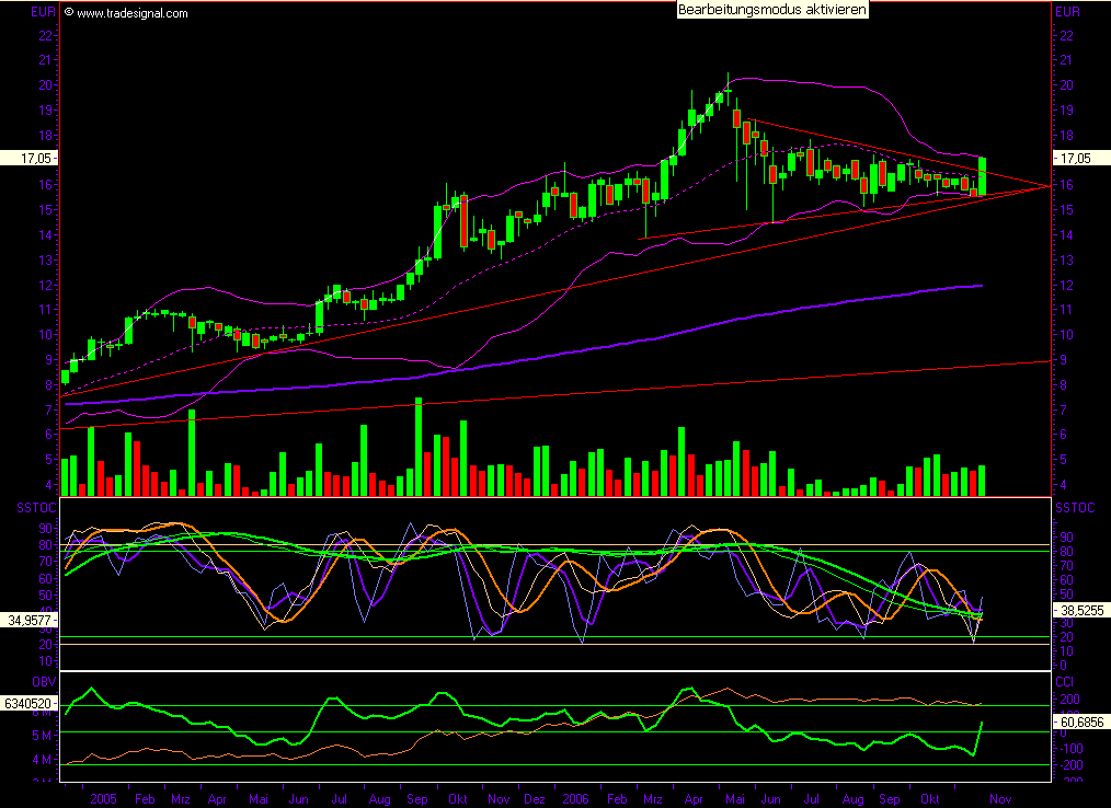 Ich möchte hiermit erwähnen, dass ich in der Aktie bereits investiert bin und dies aus technischen Aspekten, der SL sollte klar sein Ziel bei Break 17,8 € dann die High´s