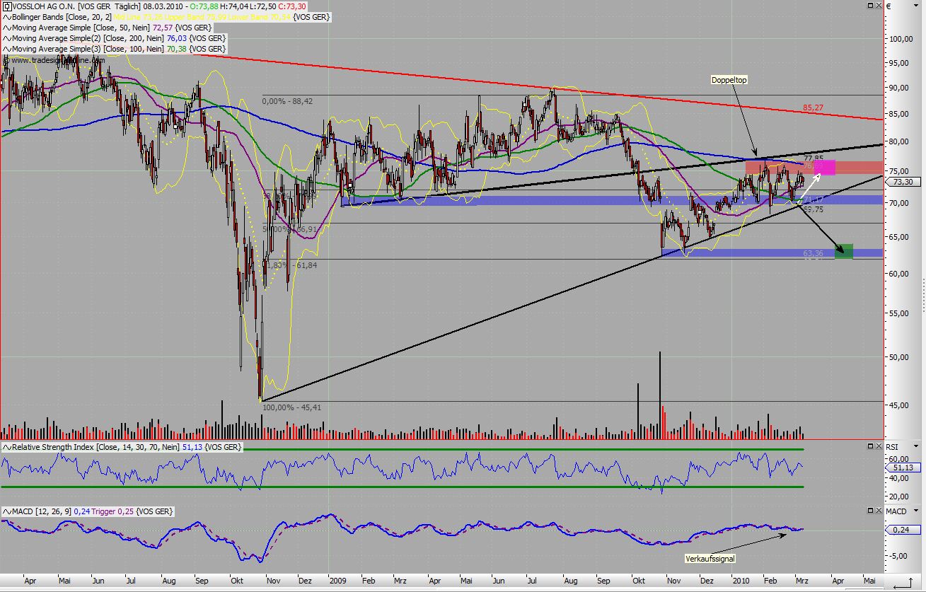 FRANKFURT (dpa-AFX) - Vossloh (Profil) sind am Donnerstag wegen Sorgen um die Aussichten im Chinageschäft unter Druck geraten. Die Anteile an dem Verkehrstechnikkonzern standen zeitweise am MDax-Ende und büßten gegen 10.30 Uhr noch 1,84 Prozent auf 73,14 Euro ein. Der Index mittelgroßer Werte (Profil) stand gleichzeitig 0,17 Prozent tiefer.