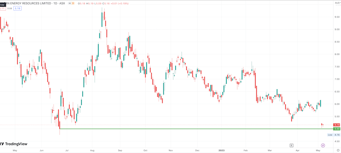 Die nächste Unterstützung liegt bei genau 5 AUD!