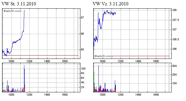 die Volumen in 2008 sind viel höher gewesen. St. Aktien die in den letzten Wochen gekauft wurden, würden sicherlich nicht reichen die Leerverkäufe von 2008 zu decken. Ausserdem sind jetzt Vz. genau so stark gestiegen, und die hatten mit der Aufregung von 2008 nicht viel zu tun.