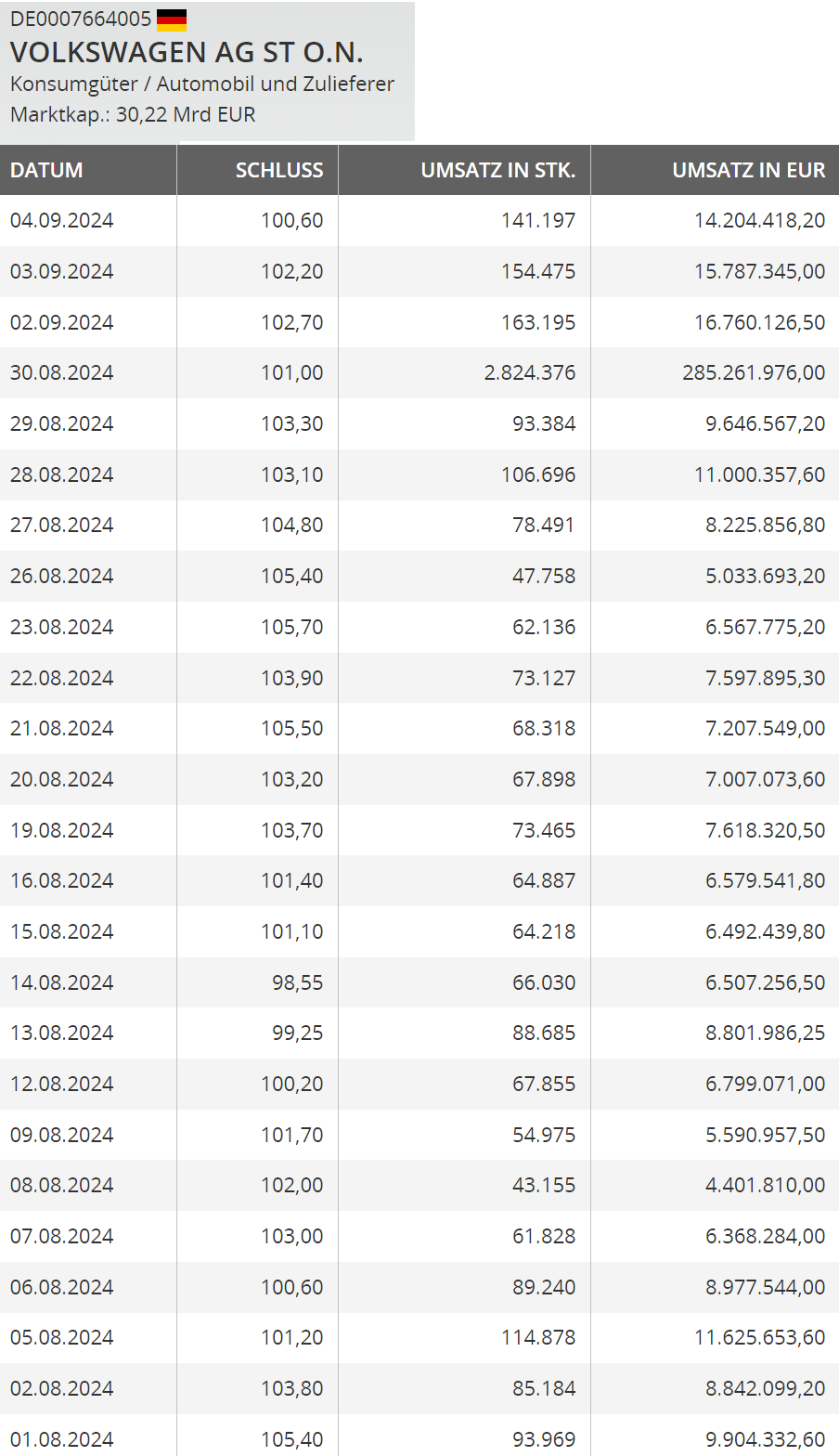 | 1.943 | VW ( Volkswagen ) - Autos, Laster, Speicher | Top-Aktien | Top-Aktien | 12:30 | ||