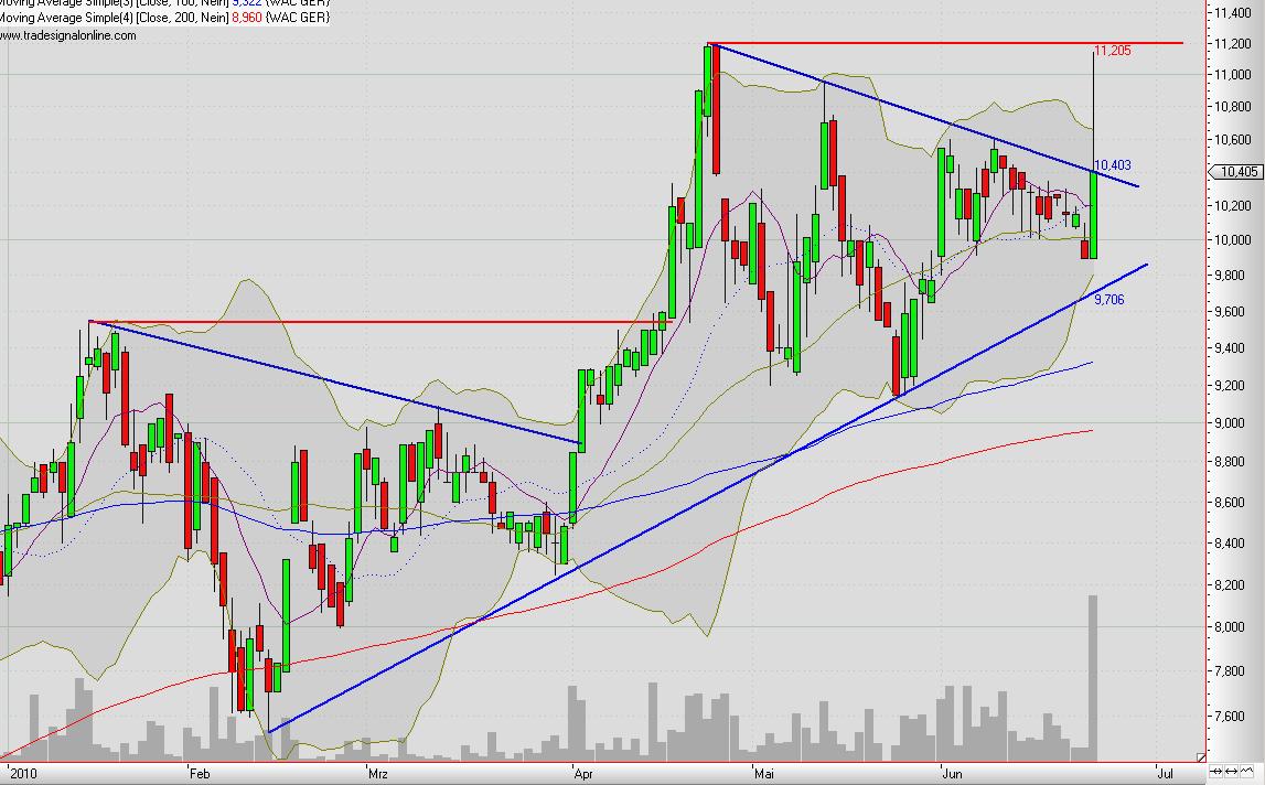 Das Wertpapier des Produzenten von Baugeräten und Baumaschinen habe in der letzten Woche kräftig zugelegt. Es habe damit an den dynamischen Aufwärtsimpuls seit Anfang April angeknüpft. Neue fundamentale Nachrichten habe es aber nicht gegeben. Was also treibe den Kurs jetzt an? Vielleicht würden angesichts des strengen und langen Winters 2009/2010 die unzähligen Schlaglöcher auf den Straßen für Fantasie sorgen. Der Reparaturaufwand sei immens, weswegen auch Verkehrsminister Ramsauer letztlich eine Soforthilfe zur Beseitigung von Schlaglöchern im Umfang von 100 Mio. Euro für Autobahnen und Bundesstraßen in Aussicht gestellt habe.