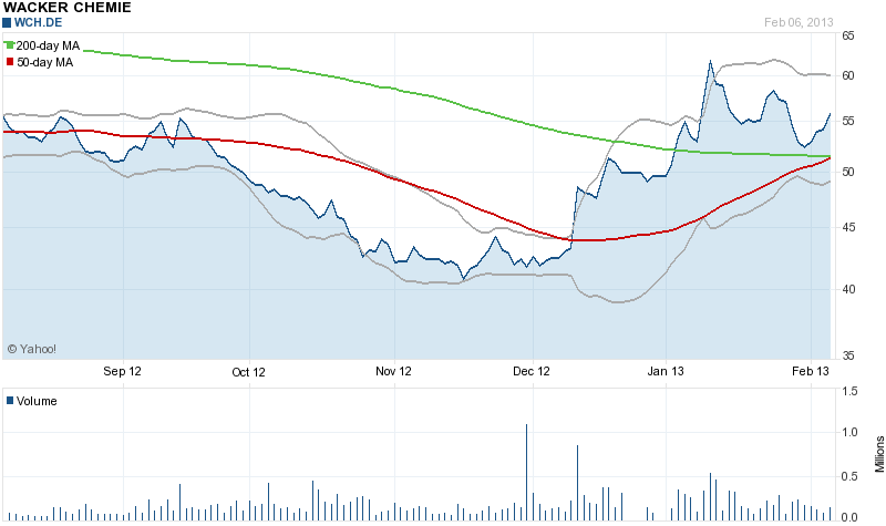 Ich denke 2013 sehen wir ein deutlich besseres Jahr, da die Polysilizium-Produktion stark gedrosselt wurde und die Preise bald auf ein auskömmliches Niveau steigen werden. Hinzu kommt das Chemie-Geschäft, in dem Wacker vor allem in den Wachstumsmärkten gut positioniert ist.