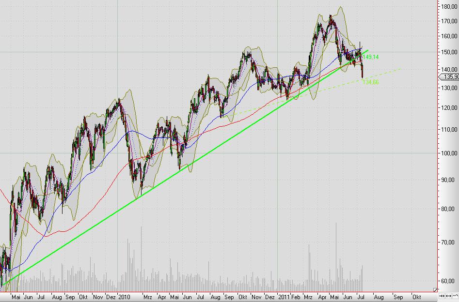 die 140 schon zum 3.Mal getestet in 3 Wochen, letzten Freitag geschafft bis 156€, zur zeit 138,68, setzt nun die Abwärtsbewegung bis 120€ ein ?? I hope not