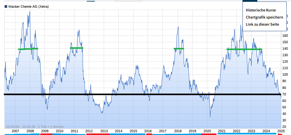 Analyst Chetan Udeshi von der Bank JPMorgan sprach in einer ersten Reaktion von einem etwas vagen Konzernausblick. Das dürfte an den wohl starken Auftragsschwankungen liegen. Die Aktien von Wacker Chemie waren am Vormittag denn auch mit einem Minus von 0,9 Prozent auf 83,74 Euro unter den größten Verlierern im Index der mittelgroßen Werte. Der jüngste Druck auf die Papiere hält damit an. 2024 summieren sich der Verluste nun wieder auf fast 27 Prozent.
