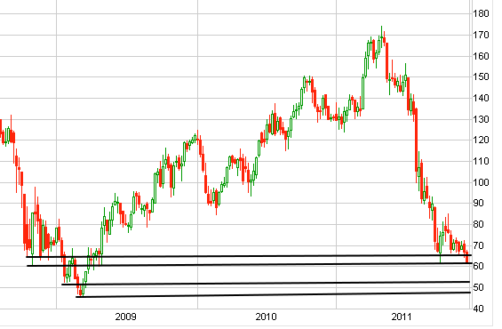 Und aufgrund des exzessiven Wachstums, geprägt von überzogenen Erwartungen an die steuerlichen Förderungen von Solarenergie sowie die bevorstehende Netzparität an vielen Orten, haben die Marktteilnehmer ihre Läger aufgefüllt. Lagerbestand bindet Kapital und ist somit teuer. Nicht selten ist es günstiger für das Unternehmen, den Lagerbestand unter dem Einkaufspreis zu verscherbeln als das Kapital für lange Zeit zu binden. So fällt der Preis für Polysilizium teilweise sogar unter die Produktionskosten.