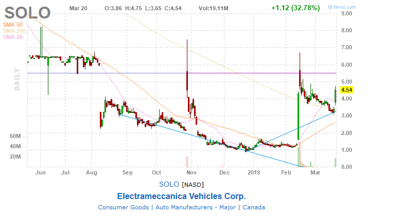 Sonderfall, weil die deusche WKN ein Viertel vom Wert des amerikanischen Tickers SOLO darstellt. Wenn eine Aktie an der NASDAQ mal so heftig explodiert war wie SOLO Mitte Februar ist es in der Datenbank und wird analysiert, wie im vorherigen Posting. Ich schreibe das in erster Linie für meinen Sohn, dem hatte ich die Aktie am 38,2 empfohlen....