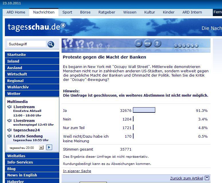 waren gestern Abend bei der Maybrit Illner die beiden Berliner Occupy Manager in der Talkrunde. War sehr interessant. Ging um Banken!