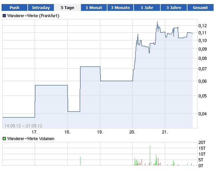 | 5 | 144 | Insolvente Wanderer-Werke AG vor Übernahme? | Rudini | Frank72 | 25.04.21 02:05 | |
