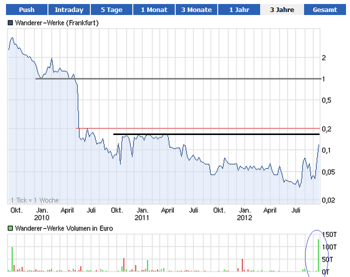 Das bringt Lust auf nächste Woche. Bin seit Gestern investiert. Meiner Meinung nach sind recht viele mit ca. 150-300% erstmal raus, aber es waren viele Käufer um die 0,10 bzw. 0,11 cent beteiligt. Das macht es für mich immer besonders spannend und ich freue mich, dass ich den Einstieg vorher gewagt habe. Nichts desto Trotz, kann es auch schnell wieder "bergab" gehen. Was steckt genau hinter dem Anstieg und was kann man in Zukunft von Wanderer erwarten? Wer kauft die Stücke auf? Geruechteküche? Diskussionen sollten weitere Teilnehmer in den Thread bringen. Drücke allen die Daumen. Es wird emotional sicherlich unbequem forum-media.finanzen.net/forum/smiley/smiley-wink.gif" style="max-width:560px" />