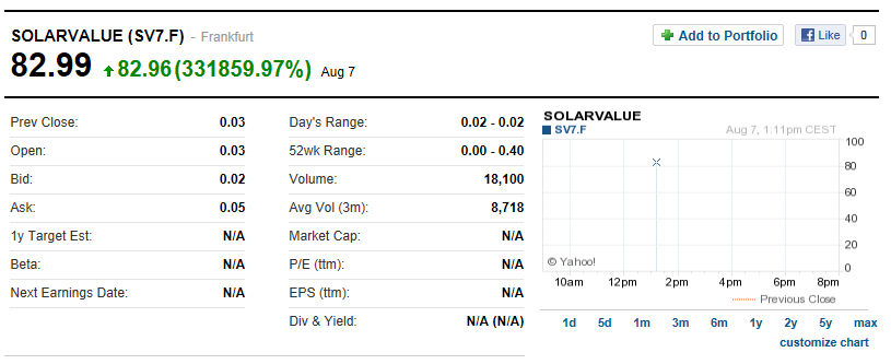 nicht vertrauen, um Gottes Willen. Wie gesagt ich habe Hilfe zur Selbsthilfe angeboten. Jedoch weiss ich mittlerweile, daß Berlin erst kurz bevor die Lichter ausgehen das Delisting veröffentlicht. Ich bin überwiegend in WO Aktiv, daher kopiere ich mal folgendes hier rein. Hat natürlich nichts mit Solarvalue zu tun und dient nur als exemplarisches Beispiel.