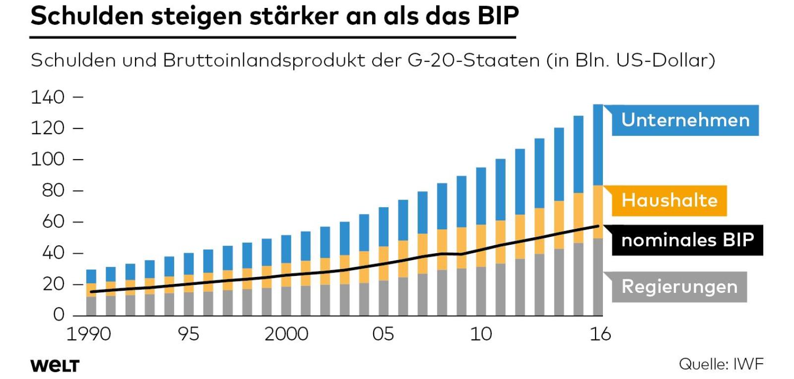 Grundlage dieser Einschätzung könnte sein, dass Trumps mit seiner Steuersenkung für Reiche, die durch neue Staatsverschuldung refinanziert werden soll, die finanzielle Solidität Amerikas untergräbt. Die Spinstory, dass Unternehmensteuersenkungen die US-Schuldenquote SINKEN lassen sollen, weil dann das BIP überproportional steige ("Rauswachsen aus den Schulden"), hat bereits Reagan anzudienen versucht. Doch buchstäblich nichts von Reagans Versprechungen hat sich erfüllt. Reagan ging vielmehr als derjenige US-Präsident in die Wirtschaftsgeschichte ein, unter dem die US-Verschuldung zu explodieren begann.