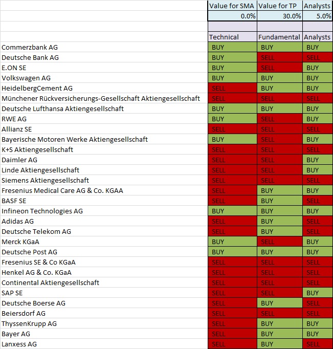 der DAX30 sowohl nach Analysten und meiner Berechnung.