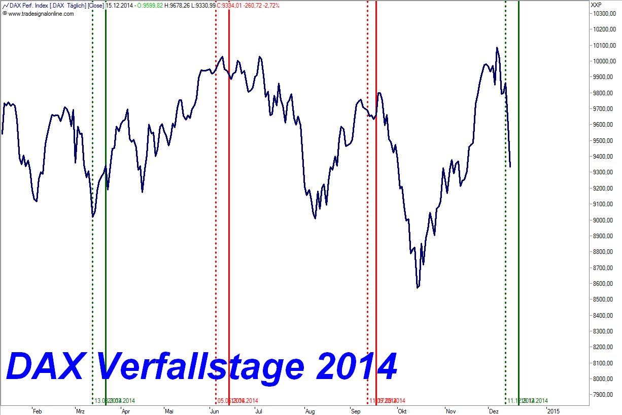 blickt man auf den anstehenden Verfallstag, dann stehen die Chancen gut für einen lokalen Tiefpunkt in den kommenden Tagen.