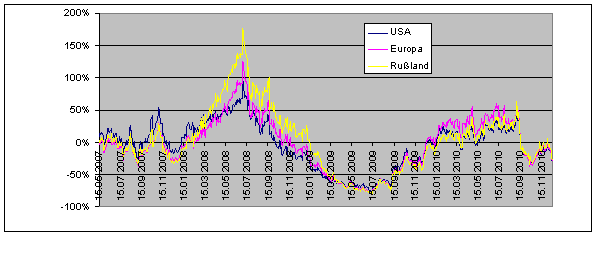 In Rußland ist die Inflation vielleicht höher dafür gibts auch mehr Zinsen auf dem Konto, den Rest richtet der Wechselkurs,hier ab ich mal den Gaspreis in verschiedenen Währungen.