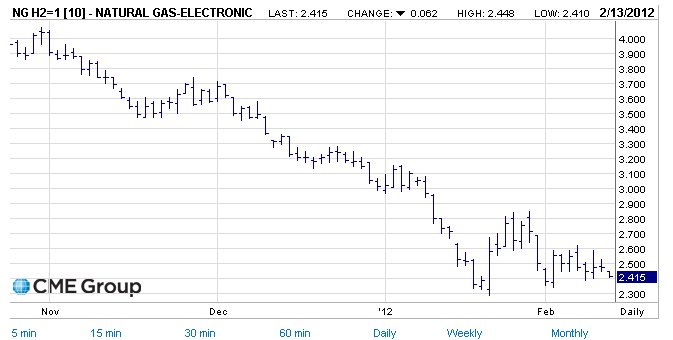 bei 2,50$ festgefressen und dann ein kurzfristiges abtauchen auf knapp unter 2$ noch bevor der März-Future ausläuft.