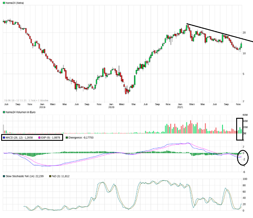 Der Absturz der Aktien dürfte vor allem mit Sorgen zu tun haben, dass sich das E-Commerce-Geschäft mit dem Abklingen der Pandemie und der Normalisierung der Wirtschaft abkühlt. Die Zahlen, die Home24 letzte Woche präsentiert hat, sind jedoch ganz respektabel. Bereinigt um Wechselkurseffekte hat sich der Umsatz in den ersten neun Monaten 40% auf 464 Mio. € verbessert. Im dritten Quartal bezifferte sich das Wachstum auf 17%.