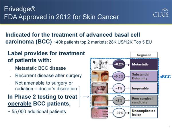 "We are extremely pleased by the highly encouraging outcome of this study, particularly since there is currently no standard of care for patients with this serious disease,” said Dan Passeri, Curis President and Chief Executive Officer. “We look forward to Genentech’s presentation of the study data in more detail in the near future, and to its planned regulatory submissions for vismodegib.”