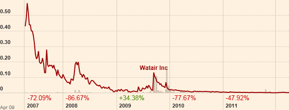 Wataire Inc., a development stage company, engages in the development, manufacture, and distribution of atmospheric water generators for use in home and office, commercial, and industrial and infrastructure applications in the United States and internationally. Its atmospheric water generators extract water from air and turn it into drinking water. The company offers AirJuicer 4010 that produces up to 5 US gallons per day; CI-2500, which produces up to 660 US gallons per day; CI-5000, which produces up to 1,300 US gallons per day; WaterProducer Greenhouse that produces up to 50,000 US gallons per day of drinking water and irrigation water for soil-less horticulture; and WaterProducer, which produces up to 13,000 US gallons per day. Its installed or mobile units produce drinking water for the bottling industry, restaurants, emergency/disaster relief, humanitarian initiatives, troop support, and remote camps. The company was formerly known as Wataire International, Inc. and changed its name to Wataire Inc. in October 2010. Wataire Inc. is based in Beverly Hills, California.