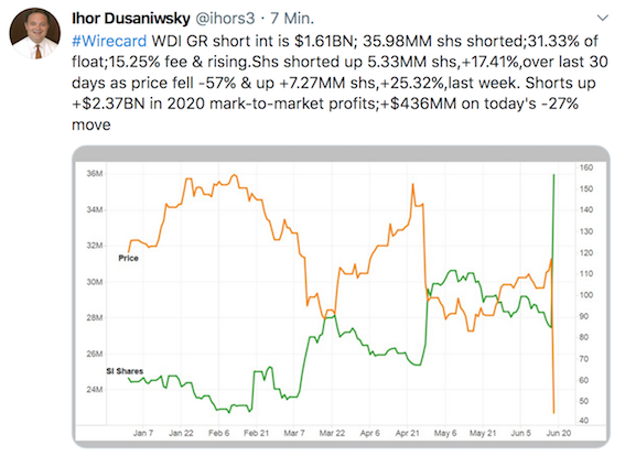 Da klar wurde, dass dieses System nun nicht mehr ewig so weiterlaufen würde( wirecard hatte ja auch angekündigt sich nach und nach von den TPA's zu trennen) hat man sich mit ein paar Leerverkäufern zusammengesetzt und ein Schema erarbeitet wie man noch einmal richtig Geld an der Börse (sauberes Geld) verdienen kann indem man orchestrierte Leerverkaufswellen mit den passenden Nachrichten unterstützt.