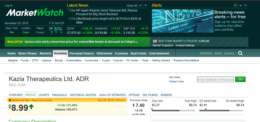 KZA ist vollkommen unter dem Radar und m.M.n. deswegen stark unterbewertet. Mit etwas Glück wird sich das die nächsten Monate ändern. Für mich ist KZA eine Beimischung zu TOCA, die Firma die mein absoluter Favorit im GBM Markt ist, aber auch KZA hat gutes Potential und der PIK3 Inhibitor ist u.U. kombinierbar und auch noch in anderen Gebieten einsetzbar (s.a. company Präsentation). Handelbar auch an der NASDAQ als ADS (1/10). Liquidität allerdings (noch) gering... Viel Glück