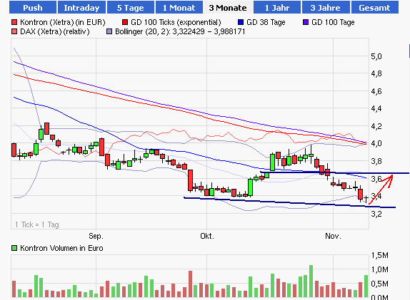 Kann natürlich sein, dass wir noch eine Zeitlang auf diesem Niveau herumdümpeln, ich erwarte aber, dass die Aktie sich bald Richtung 100-Tage-Linie bewegt, also über 4Eur.