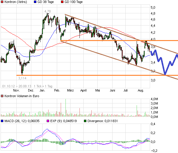 Zumindest ist es wirklich interessant, dass Kontron plötzlich ohne News steigt. Eine Idee wäre vielleicht, dass hier versucht wird Kontron im TecDax zu halten. Man ist nämlich durchaus gefährdet und könnte schon im September rausfliegen. Den Kurs 10-15% hochzuheben und die Umsätze auch nochmal zu steigern, könnte vielleicht reichen, um im TecDax vorläufig zu bleiben.