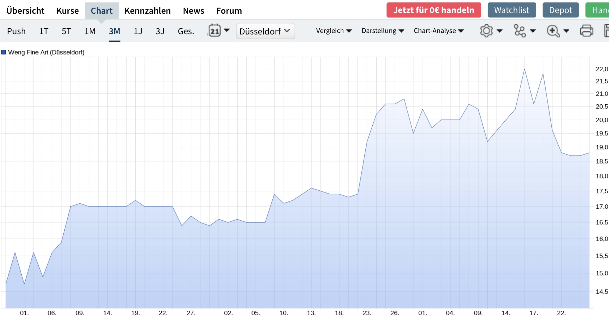 Ansonsten könnte man mal zwei Jahre abwarten, ob sich nicht auch ein Kauf zu 22€ als guter Griff erweisen wird. Die Entwicklung der WFA ist aktuell durchaus dynamisch, auch wenn für mich die ArtXX perspektivisch interessanter ist. Vor allem könntest Du mal überlegen, ob die ArtXX-Aktie wirklich 6€ (also 4x Dividende) wert ist oder nicht doch vielleicht deutlich mehr. Die Aktie wird wohl kaum zu 6€ an die Börse kommen. Wie würde denn Deine kurzfristige Rechnung für die 22€-Käufer ausfallen, wenn die ArtXX zum Beispiel zu 12€ an die Börse kommt oder sogar mehr? Warte den Börsengang doch einfach mal ab und rechne nicht einfach mit dem jetzt ermittelten steuerlichen Wert der ArtXX-Aktie. Was passiert eigentlich mit dem Kurs der WFA, sofern der Börsengang angekündigt wird? Und wer sagt denn eigentlich, dass der Börsengang erst in 2022 und nicht schon in 2021 kommt. Ich habe nicht Erinnerung, dass Herr Weng sich hierzu eindeutig in der HV geäußert hat.