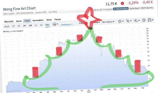 Jetzt wird den Kritikern zumindest klar, dass der CEO mit dem ARP Weitblick bewiesen hat. Aktuell werden Nebenwerte völlig undifferenziert in den Keller geschickt. Kaum eine Aktie entzieht sich dem momentan. Der DAX, der Leitbulle der rutscht unter die 12000, die 10000 könnten wir auch noch sehen. In Italien gab es einen Rechtsruck. Die Italiener lassen sich nicht mehr länger von der EU gängeln. Der Euro ist gefährdet. Eine Fehlgeburt war dies jasowieso.Länder wie Polen könnten für den Anschlag auf Nordsream 1 und 2 verantwortlich sein. Europa bricht auseinander. Corona kehrt im Herbst zurück, gilt mittler Weile aber als Mücke. Lieferkettenprobleme haben wir nach wie vor. Frachtkosten sind hoch und die Energiepreise explodieren, Stahl ist extrem teuer. Die Inflation galoppiert und der Ukraine Krieg eskaliert. An deren Spitze eine völlig inkompetente Regierung. Der Sozialstaat finanziert derweil Ukrainer, die mit dem Flixbus einen Wochenendtrip von Kiew nach Berlin machen. Der Bundestag nickt dies ab und kritisiert Merz wegen dem Wort Sozialtourismus. Römische Spätdekadenz macht sich breit. Für Kunst hatte man da immer ein paar Sesterzen übrig. Aber der Dax rauscht in den Keller. Sehen wir vielleicht sogar die 8000? Unser CEO hat auf jeden Fall alles richtig gemacht. Selbst die 8€ können wir nicht ausschließen. Eine Deutsche Forfait ist der Börse trotz starker Halbjahreszahlen und Anhebung der Gewinnprognose mit einem KGV von 3 noch zu teuer. Die Börse schaut nicht mehr nach den Fundamentals. Alles muss raus, rein ins faulende Cash. Der Weg zur Digitalwährung ist geebnet. Nach Chaos kommt Kontrolle. Vielleicht sollte WFA dann noch ein zweites ARP auflegen. Jetzt kommt aber erst das Erste.