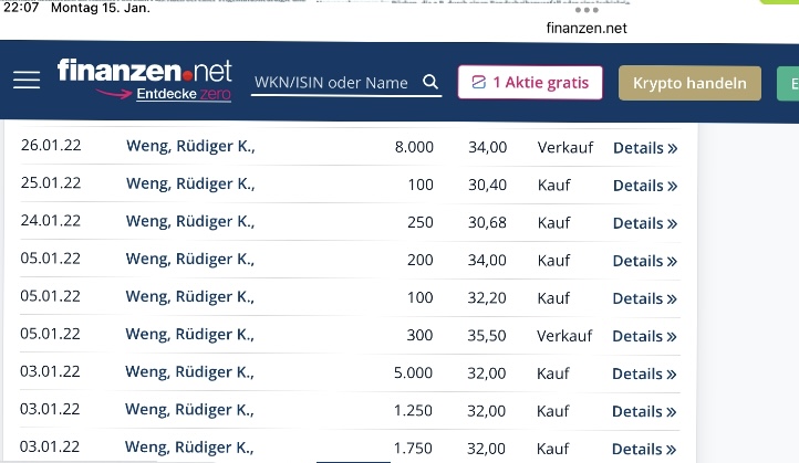 Die Aktien, die separat erscheinen (1,6 Mio. privat und 2,0 Mio. A+A) sind die, welche ich schon seit Unternehmensgründung halte. Alles andere ist "Handelsbestand" und das sind dann eher kleine Stückzahlen und die werden, zumindest wenn die 20k EUR Handelsvolumen (Kauf + Verkauf) überschritten werden, gesondert gemeldet. Generell habe ich aber nicht vor, mich nennenswert am Aktienhandel mit WFA-Aktien zu beteiligen. Von daher ist das Thema wohl weitgehend irrelevant.