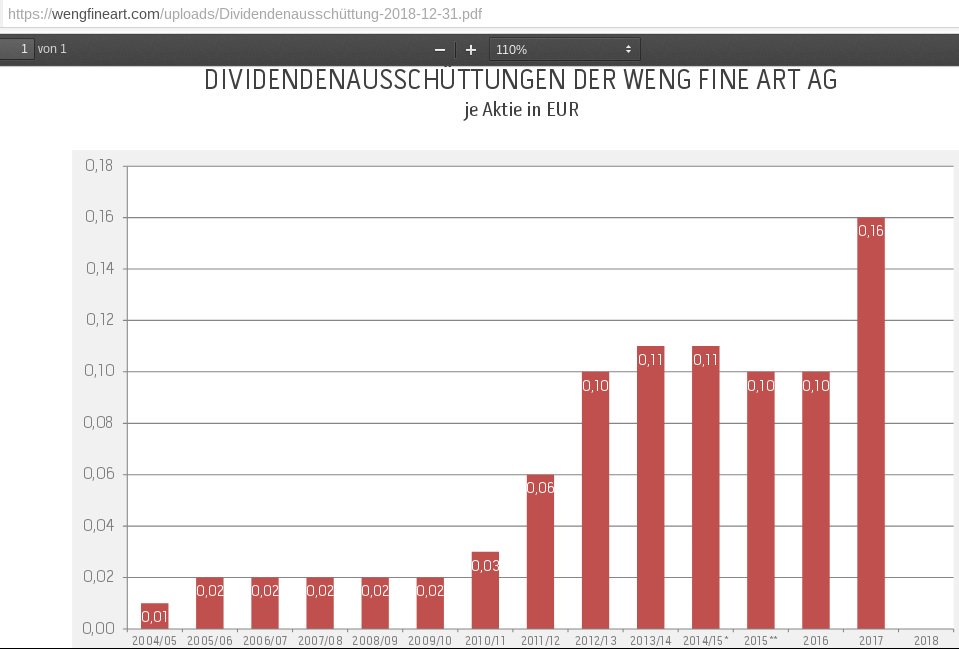 Nur weil man Umsätze von Weng Fine Art AG auf die WFA Online AG auslagert, entstehen doch keine zusätzleichen "Werte", sondern zusätzliche Kosten für zwei Gesellschaften, zwei Buchhaltungen und (hoffentlich auch) zwei geprüfte Abschlüsse? Wieso bürdet man den Aktionären hier wohl ohne Not zusätzliche Kosten in den Unternehmen auf?