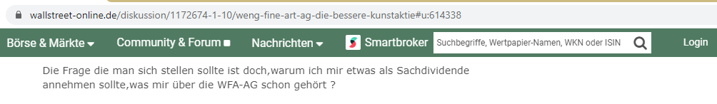 Ist wie beim Bäcker, wenn der ab 16.00 alles zum halben Preis verkauft, dann wartet man halt bis 16.00. So halten es auch die Käufer der WFA Aktien, nur dass bisher weit und breit keine Abgabebereitschaft mehr vorhanden ist.