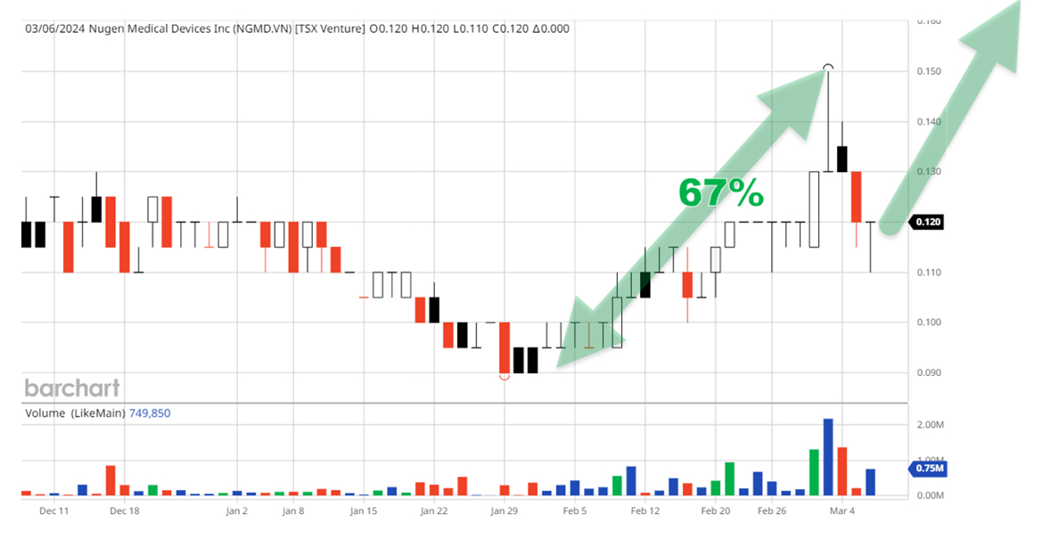 Toronto, Ontario - 25. Juli 2023 - Toronto, Ontario / IRW-Press / NuGen Medical Devices Inc. (TSXV: NGMD) (das "Unternehmen" oder "NuGen") freut sich bekannt zu geben, dass das Unternehmen eine Vertriebsvereinbarung mit Sol-Millennium Medical Inc. ("Sol-M") aus Chicago, Illinois, USA, für sein kanülenloses medizinisches Gerät InsuJet und den entsprechenden Verbrauchsmaterialien über eine Laufzeit von fünf Jahren mit einem von NuGen auf etwa 204 Millionen Dollar geschätzten Wert und einer geschätzten Bruttomarge von 72 % abgeschlossen hat.