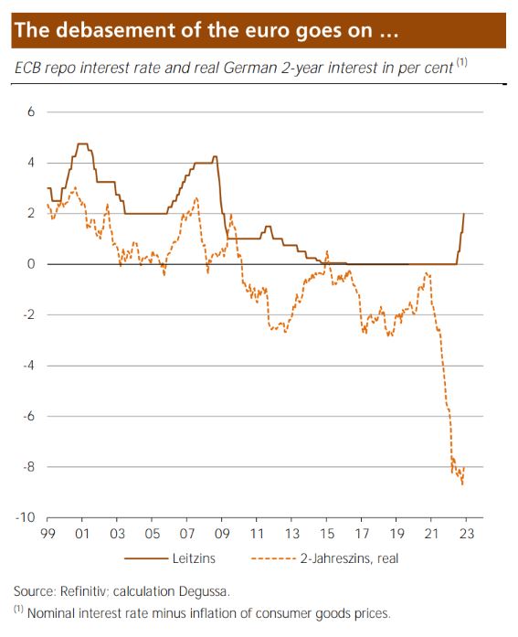 Setzt man die inflation über den gesamten Zeitraum von 2014 bis heute, kann man nur noch das Grauen bekommen. Man vergleiche die Äußerungen Erhards zur Inflationspolitik ( siehe Beitrag von KK).