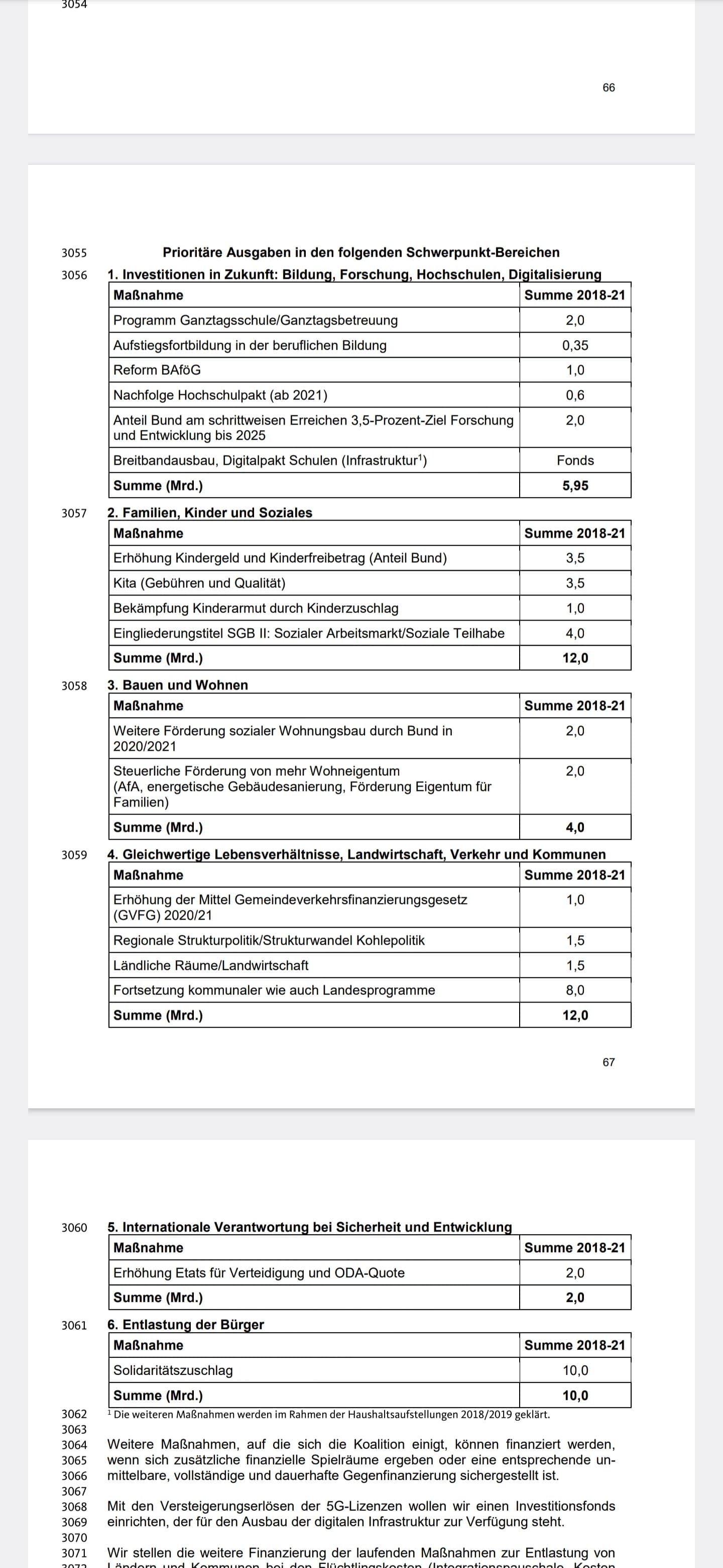 Die Koalition aus CDU, CSU und SPD setzt folgende finanziellen Prioritäten für die
