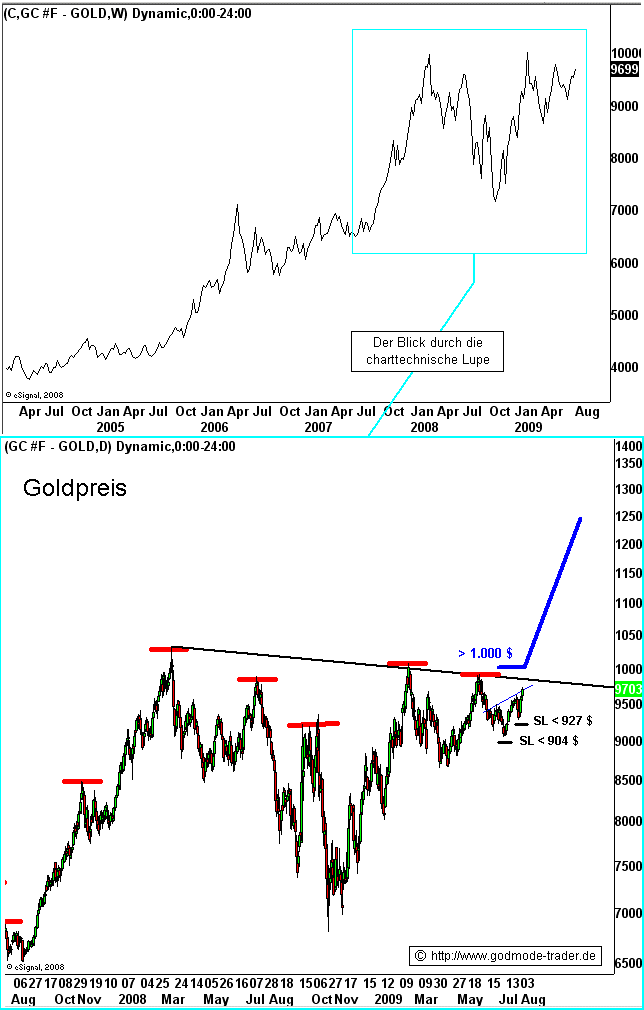 Diese Strategie des Gold-Kartells ist heute gründlich schief gegangen. Waren es die Streitigkeiten mit Geithner, die die Kartell-Banken dazu ausgenutzt haben, ihre Macht gegen eine stärkere Regulierung der Obama-Administration zu zeigen ? Wenn ja, dann müssen Geithner und Summers jetzt wohl zittern: Gold ist ihre Archilles-Ferse. Allerdings würde es dann auch den Wall Street Banken an den Kragen gehen. Ein Schuss vor den Bug - aber kein richtiges Gefecht. Zu eng ist man miteinander im Dollar und in den Staatsanleihen verbunden. Nachdem die Marke von $965 durchbrochen wurde, trauten sich nun auch die anderen Händler wieder in den Markt. Gold konnte in der Folge schnell bis auf $970 ansteigen.