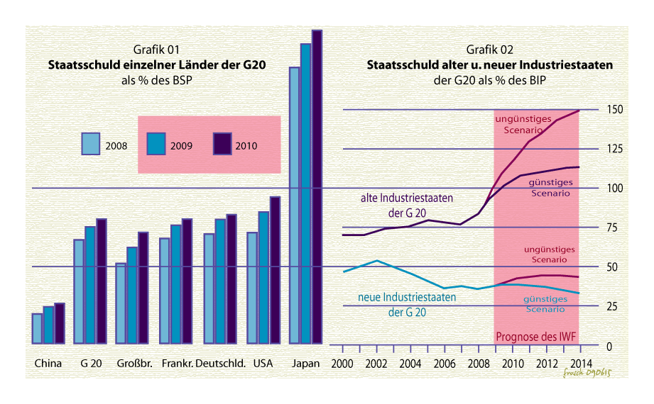 Und führt direkt in die Sackgasse, aus der Japan längst nicht mehr herraus kann. Japans totaler Zusammenbruch wurde lediglich deshalb bisher vermieden, weil Japans Deflation (mit vielen Rezessionsjahren) in eine Zeit fiel, in der Weltwirtschaft insgesamgt florierte. Ohne die massiven Erlöse der japanischen Exportwirtschaft, wäre Japan an der Verschuldung längst kollabiert.).