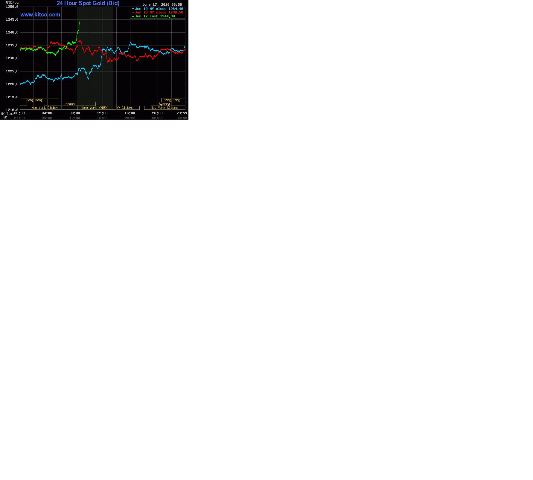 Zum Nachmittag und vor allen Dingen kurz nach Beginn des Handels an der New Yorker COMEX stieg Gold weiter an und erreichte bis zu $1.238 in der Spitze. Das war dann aber der Tages-Höchststand und von nun an ging es wieder leicht bergab.