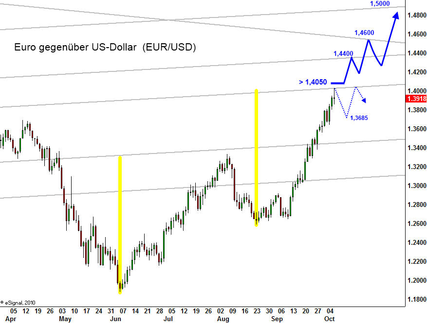 Dennoch ist daraufhin Ruhe eingekehrt. Erstaunlich. Auch heute, obwohl Irland verzweifelt kämpft, steigt der Euro gegen den Dollar. Ein Wunder? Am 3. Oktober 2010 meldeten die Nachrichtenagenturen, der chinesische Ministerpräsident Wen Jiabao betonte zu Beginn seiner zweitätigen Reise nach Athen, China habe griechische Staatsanleihen gekauft. Und China werde das auch in Zukunft tun.
