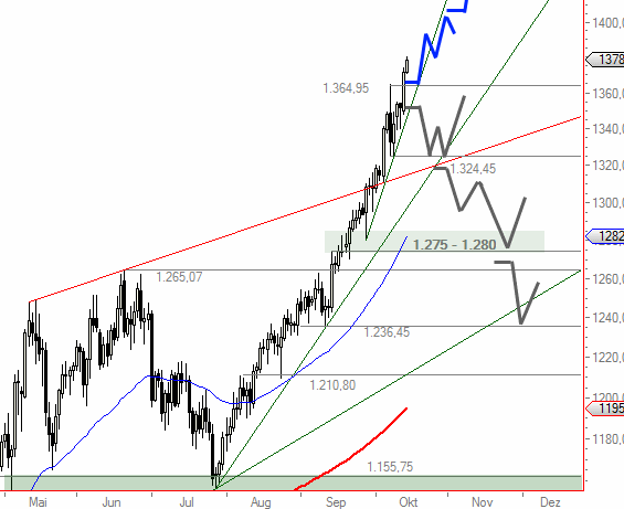 Natürlich ist eine sogenannte Hedging-Strategie in solch volatilen Märkten wie beim Gold nicht schlecht. Aber wer diese Berichte regelmäßig liest, der weis, das es eher nur um kurzfristig, taktische Trades geht. Also Optionsscheine mit Ablaufdaten von circa einem Monat und weniger. Entweder man liegt hier völlig daneben und verliert seinen kompletten Einsatz – aber gleichzeitig steigt das selbst gehaltene Gold um mindestens den gleichen Betrag wie das verlorene Papiergeld. Oder man erwischt wirklich eine kräftige Goldpreis-Drückung und sammelt die Gewinne aus den Short-Optis ein.