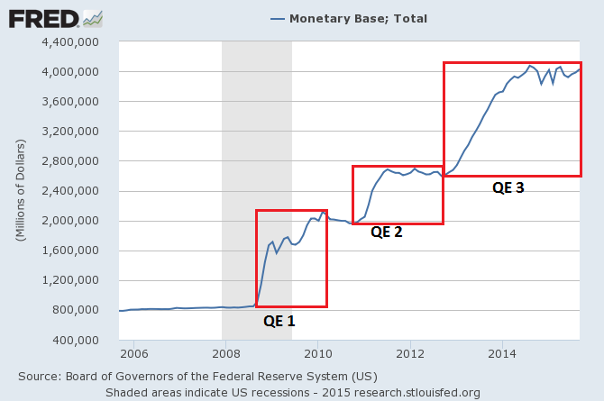 In 2012 begann Phase 3 der Fed QEs. Was im Rahmen der drei "substanziellen Erleichterungen" (QE1 bis QE3) ablief, werde ich im Folgenden aufzeigen: