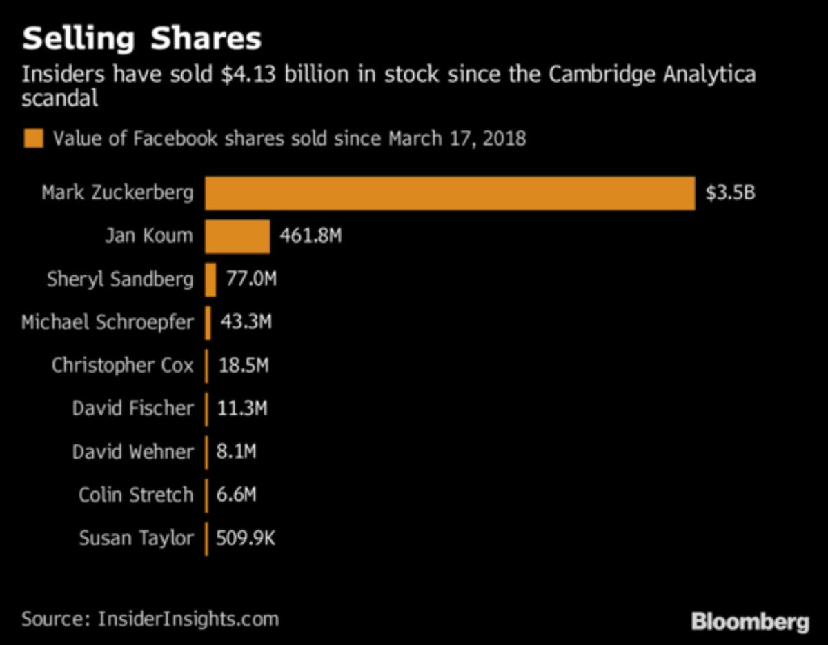 Zu dieser Grafik "Zuckerberg monthly sales of FB stock" muss man mal sagen, dass das leicht irreführend ist: Die Angaben sind in Millionen US$. Natürlich sind die Werte in der Grafik höher, wenn hierbei der Aktienstand höher ist, was 2018 mit ca. 180-185 EUR definitiv der Fall ist als z.B. 2012 als die Aktien bei ca. 15-20 EUR standen. In Wirklichkeit hat Zuckerberg 2012 einen höheren Anteil an Facebook verkauft als 2018. Nur war der Wert eben damals niedriger als ein 10tel von jetzt! Ansonsten ist es nicht ungewöhnlich, dass ein CEO erstmal seine Schäfchen ins Trockene bringen möchte und sein Vermögen auch gerne ein Stück weit diversifiziert hält.