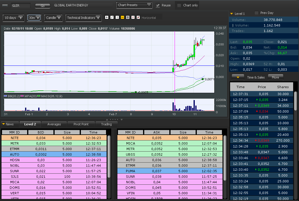hatte mir Stücke auf $.022-.023 gegönnt, da ich aber äußerst skeptisch war (auch wegen Freitag) und weil der Kurs schon doppelt so hoch stand wie gestern, habe ich die ursprüngliche Stückzahl (400k) um die Hälfte reduziert (200k), macht im Einkauf 3.327 eur, VK bids .030-.032 wahrgenommen zu 4.584 eur, bleibt abzgl. Einkauf ein Gewinn von +1.257 oder 37% für 0.5 Stunden Arbeit.