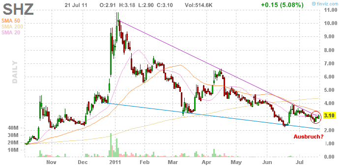 SHZ EK war 3,93$ aktuell 3,10$ (AM sogar grade 3,15$) 5% im plus sieht nach trendwende aus........