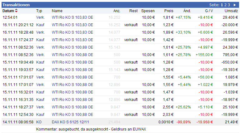 da die Tradingvehikel noch neu sind..., hatte es mich letzten Freitag erwischt und ich war ausgeknockt worden (-20k eur, Zeile ganz unten)... im Übungsdepot... und landete über alles bei ca. 79k eur...