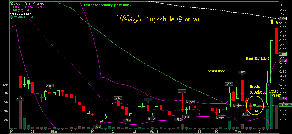 danke zu DSCO war ein schöner pick! QTWW und OXGN warn auch nice letzte woche hoffe wir können so weitermachen.....